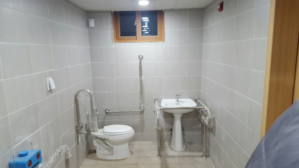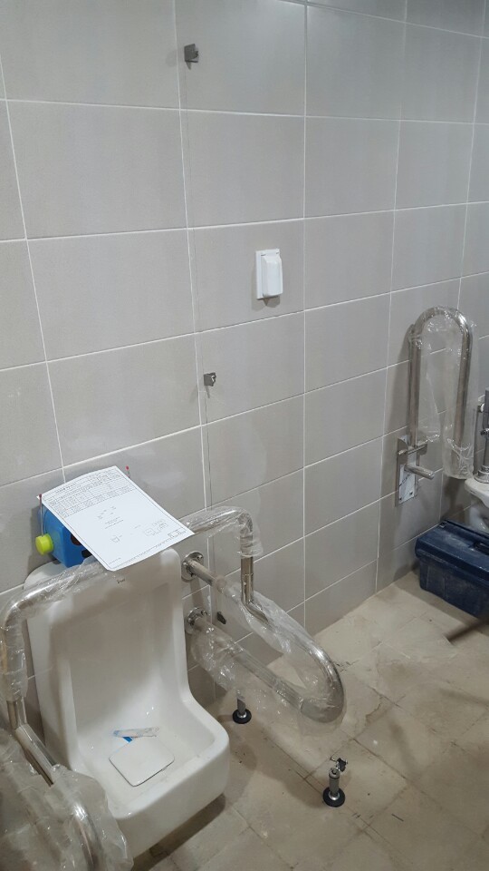 장애인 화장실의 경우 법규로 규정된 사이즈 내경은 1800*1400 이상이 확보되어야 하며 장애인화장실손잡이, 점자블록, 점자표지판이 함께 설치 되어야 합니다.