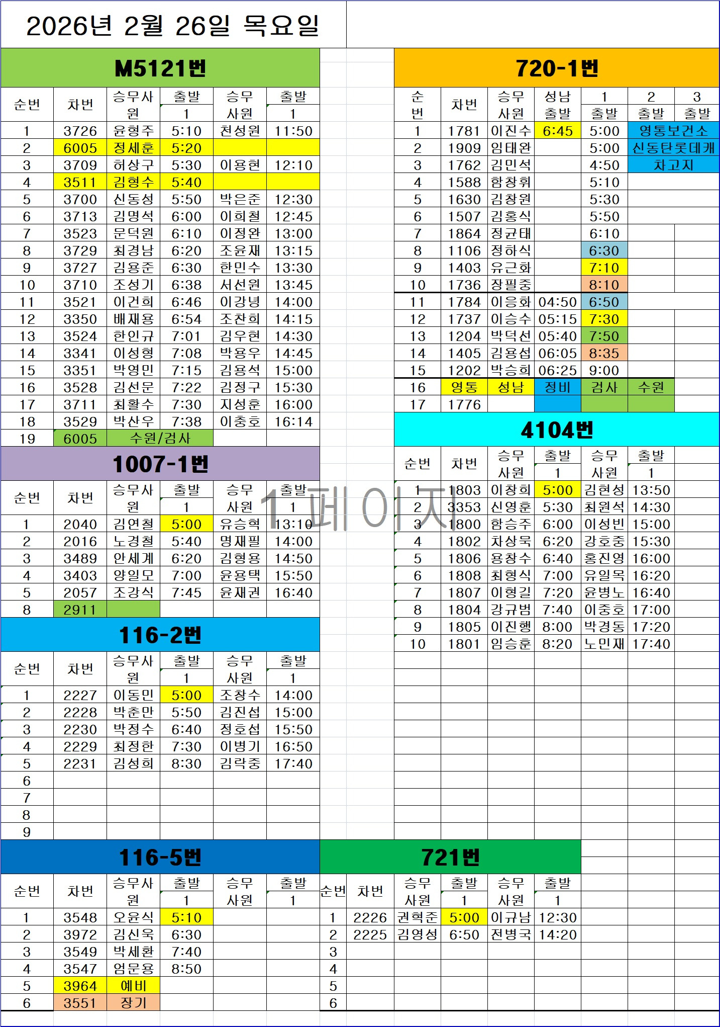 영통 02월 26일 목요일 배차일보: 노선 전체 수정되었습니다. 작성자영통배차실|작성시간26.02.25|조회수234 목록 댓글 0 글자크기 작게가 글자크기 크게가 영통 02월 확인.xlsx38.52KB 첨부파일첨부된 파일이 2개 있습니다. jpg 파일 0226.jpg 다운로드 xlsx 파일 영통 02월 확인.xlsx 다운로드 다음검색 현재 게시글 추가 기능 열기 북마크 공유하기 신고 센터로 신고 댓글 댓글 0 댓글쓰기 답글쓰기 댓글 리스트
