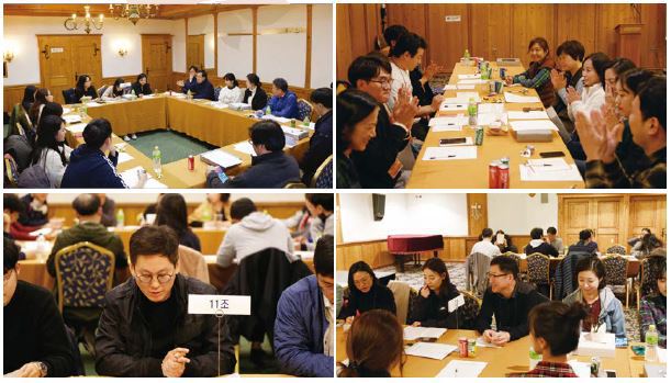 본격적으로 워크숍 메인 프로그램인 분임토의가 이어졌다. ‘KDI 50주년, KDI의 비전과 실행 전략’이란 주제로 진행된 분임토의는 사전에 철저한 기획이 있었다. 워크숍 TF는 전 직원을 스무개 조로 나누되 최대한 같은 부서원들과 서로 묶이지 않도록 조를 구성했다. 자칫하면 누구도 쉽게 이야기를 꺼내기 어려운 화두가 될 수 있다는 생각에 조원 모두에게 똑같은 설문지를 제공하고 답변을 작성한 후 그것을 바탕으로 자신의 생각을 발표할 수 있도록 배려했다. 부서도, 나이도 다른 십수명의 사람들이 한 조라는 이름으로 모여 처음에는 조마다 어색하고 멋쩍은 분위기가 연출됐지만 차츰 시간이 지나면서 토의장에는 열기가 달아올랐다. KDI의 역할과 위상에 대한 다양한 시각은 물론 우리 스스로에 대한 고민과 반성, 앞으로 우리가 꼭 해야 할 것까지 아이디어들이 쏟아져 나왔다. 멀게만 느껴졌던 KDI의 50주년이 가깝게 느껴진 탓일까. 예정돼 있던 토의시간을 훌쩍 넘기는 조들이 많았다. 이렇게 모인 의견은 하나로 취합돼 전직원들에게 전해질 예정이다. 또 추후 50주년 기념사업을 준비할 때도 중요한 자료로 쓰일 계획이라고 한다.