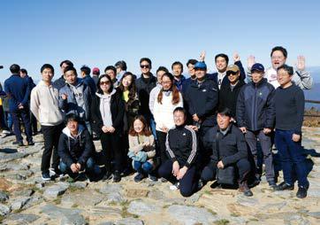 다음날 아침, 숙소를 나와 울긋불긋 단풍이 가득한 덕유산으로 나섰다. 설천봉과 향적봉에 오르기 위해 직원들 대부분은 곤돌라 앞에서 줄을 섰지만 간혹 등산화 끈을 고쳐 매고 산행을 택하는 사람들도 눈에 띄었다. 곤돌라 속에서 내려다보는 덕유산은 그야말로 장관이었다. 처음에는 그저 군락을 이룬 단풍나무가 빨갛고 노랗게 보이는가 싶더니 어느새 고개를 돌리는 곳곳이 햇살에 비춰 반짝거렸다. 마치 프리즘 속에 있는 듯 눈이 부셔 꿈을 꾸고 있는 것 같은 착각이 들 정도였다. 설천봉에 도착해 부서마다 사진을 찍는가 싶었는데 금세 모두들 향적봉을 향해 오르고 있었다. 설천봉에서부터 15분가량 계단을 오르자 향적봉이 나타났다. 조금전의 풍경과는 다르게 360도 시야가 뻥 뚫려 있었다. 가볍게 맺힌 땀방울이 기분 좋게 씻겨 나갔다. 안개가 조금 끼긴 했지만 가슴 속까지 시원해지는 바람과 함께 덕유산 전체가 한 눈에 들어왔다. 이 순간을 함께 남기고 싶은 마음에 단체 사진을 찍고, 향적봉의 아름다운 경치도 마음에 저장했다.