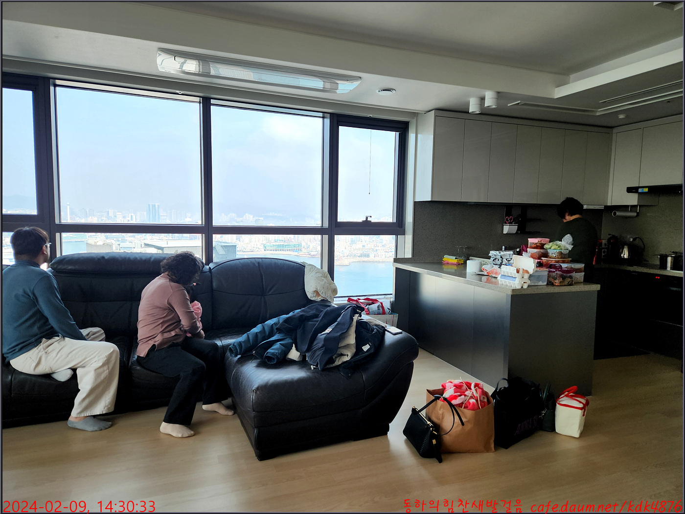 야경을 감상한다. 준비해 간 음식으로 저녁식사를 하며 분위기 좋은 34층 아파트에서 술 한 잔 거나하게 하게