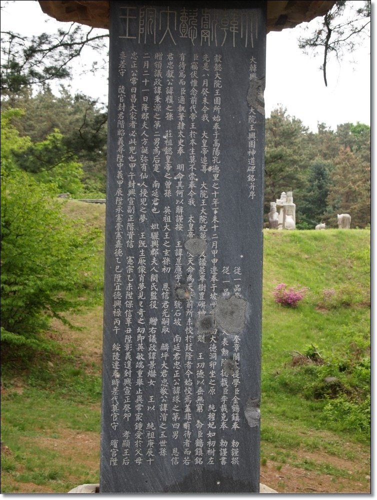 그가 세상을 떠난지 10년이 흐른 뒤에야 조정은 흥선대원군의 묘(墓)인 흥원(興園)을 '아소당' 뒤뜰에서 경기도 파주 운천면 대덕동(현재의 경기도 파주군 문산읍 운천리)으로 옮겼다. 첫 번째 천봉(遷奉 .. 왕실의 묘를 이장하는 일)이었다. '흥원천봉등록(興園遷奉騰錄)'은 흥원(興園)을 경기도 파주로 천봉할 당시의 기록을 옮겨 적은 책이다. 흥원(興園)을 천봉하는 과정과 거기에 들어간 물력이 상세하게 기록되어 있어 당시 국가차원에서 시행한 천봉(遷奉)의 규모를 파악할 수 있다. 그러나 1966년 흥원(興園)은 경기도 남양주시 화도읍 창현리로 또 한번 자리를 옮긴다. 흥원 일대에 미군(美軍) 군사시설이 들어섰기 때문이다. 척화비(斥和碑)까지 세우며 외세(外勢)를 배척하였던 그가 사후(死後)에도 외세(外勢)에 밀려 쉴 곳을 옮겨야 했다는 점이 얄궂다.