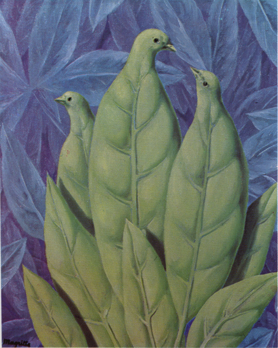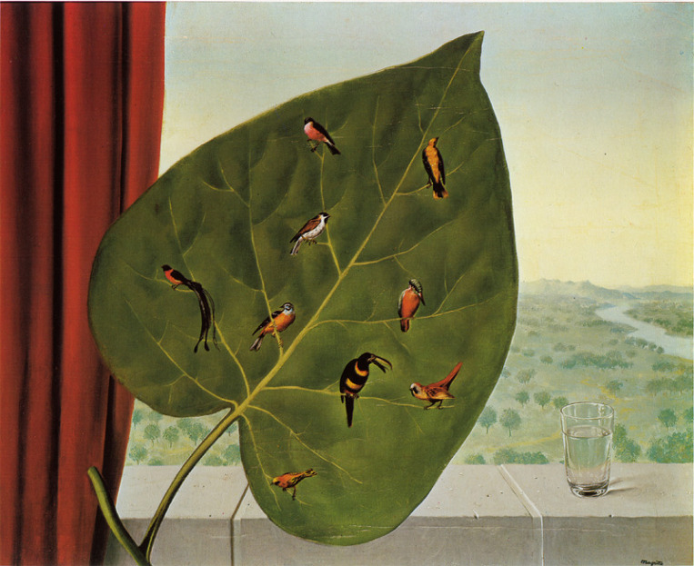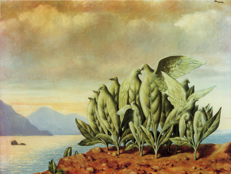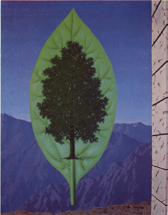시간이 흐름에 따라 마그리트는 마치 광고언어처럼인접성과 유사성에 의해 대상들 사이에 세워진 연상작용에서 모든 가능한 조자가을 뽑아 내어 이개념적 조작을 점점 더 조탁하고 복잡하게 만들고 있다. 근접성에 의하거나 또는 대립에 의한 사물들이 가지는 관계성을 지속하면서, 사과나 태양과 같은 둥근 모양으로 사람의 머리를 대신하게 하거나, 나뭇가지처럼 나뭇잎의 잎맥 위에 새들을 앉힌다든지 하여 일반적인 이미지와는 다른 엉뚱한 결합을 통해 다른 사물로 대상들을 변형시킨다.