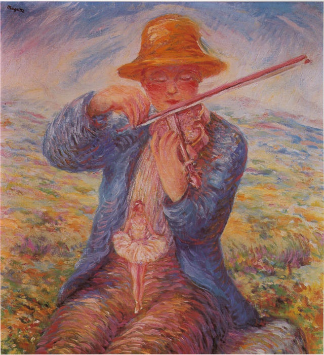 납골당 출구 가까이에 있는 포플러 나무에 투영된 화가의 이미지는 막연하게나마 회화의 계시적인 힘을 가진 마술적 요소와 같다라는 생각을 떠오르게 했다고 한다. 그럼에도 불구하고 화가로서의 출발은 1916년에 들어간 브뤼셀의 미술 학교에서 시작되었다.