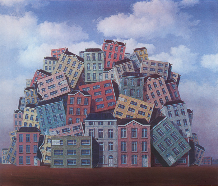 이 그림은 일련의 복잡한 변화의 결과를 나타내고 있다. 무질서하게 쌓여진 벽돌 모양의 거대한 건축용 사각석은 그 기능과 관련하여 집들로 변형되었다. 동시에 같은 모양의 규칙적인 집들의 배열은 산더미처럼 산적된 집들의 임의성과 대조를 이루고 있다.