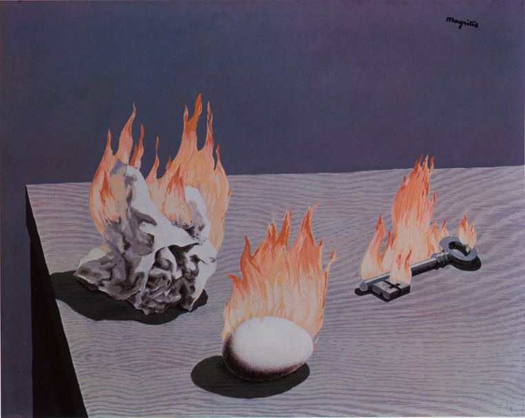 이런 시적 감정을 불러 일으키기 위해서 화가는 종이와 타지 않는 대상들을 화염 속에 제시하고 있다.