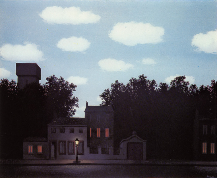 이 주제로 작업한 초기 작품들 중의하나로 그림 안에서 밤의 풍경과 낮의 풍경이 각각 화면의 반을 차지하며 되치되고 있다.