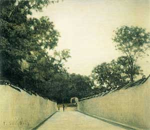 성균관 풍경 (1959) ] 그는 정물화를 주로 그렸으나, 비원이나 성균관 등과 같은 고궁이나 전통