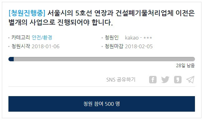 많은 분들이 청원에 참여하여 서울시의 이기적인 행태를 진행하지 못하도록 참여 바랍니다.