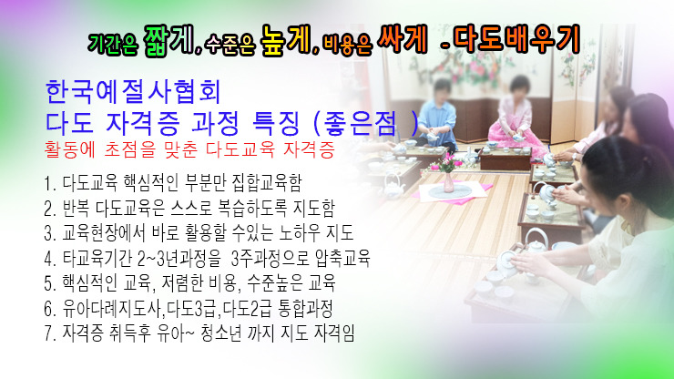 한국예절사협회는 #다도교육 지도사 2급 자격증 과정을 개강합니다.