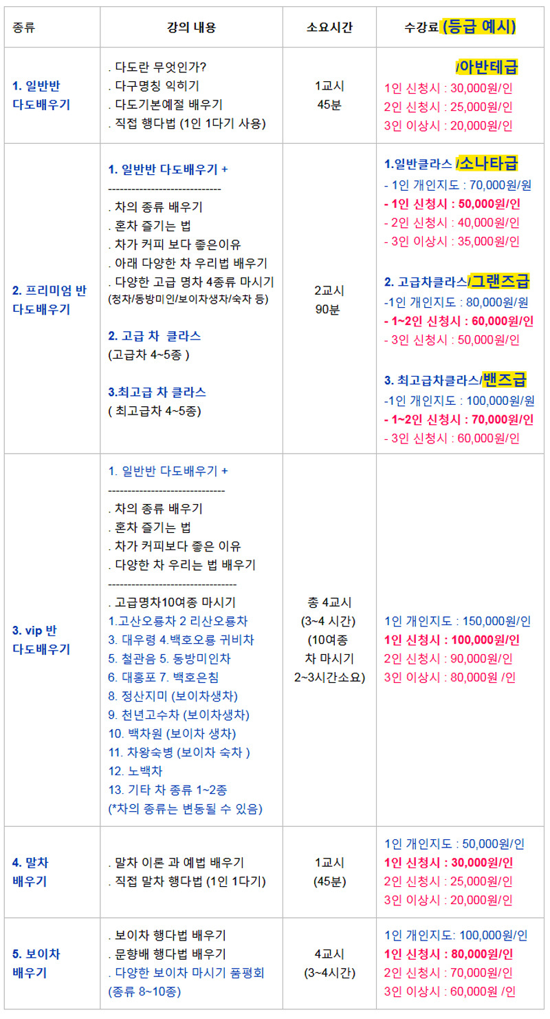 - 다도를 알고싶은 분 (입문반, 취미반)