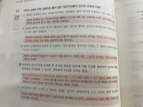 민법 채권파트 계약의 성립 문장 이해가 안되는데 예시 들어서 설명해주실 분 계시나요ㅠㅠ 작성자밍먕이|작성시간23.05.25|조회수345 목록 댓글 2 글자크기 작게가 글자크기 크게가 # 이곳은 자유게시판입니다. 수험관련 매매 교환 관련 글은 해당 게시판에 글을 남겨주시기 바랍니다. 4번이 답인데 문장이 이해가 안되네요ㅠㅠㅠ쉽게 풀어서 예시들어 설명해주실 고수분 계실까요..ㅠㅠ 다음검색 현재 게시글 추가 기능 열기 북마크 공유하기 신고 센터로 신고 댓글 댓글 2 댓글쓰기 답글쓰기 댓글 리스트 작성자수성의마녀 | 작성시간 23.05.25 4번은 그냥 승낙기간을 도과해서 승낙을 발송했기때문에 틀린겁니다. 승낙의 기간을 정한 계약의 청약은 청약자가 그 기간 내에 승낙의 통지를 받아야 함승낙의 기간을 정하지 않은 계약의 청약은 청약자가 상당한 기간 내에 승낙의 통지를 받아야 함 답댓글 작성자밍먕이 작성자 본인 여부 작성자 | 작성시간 23.05.25 감사합니다! 댓글 전체보기