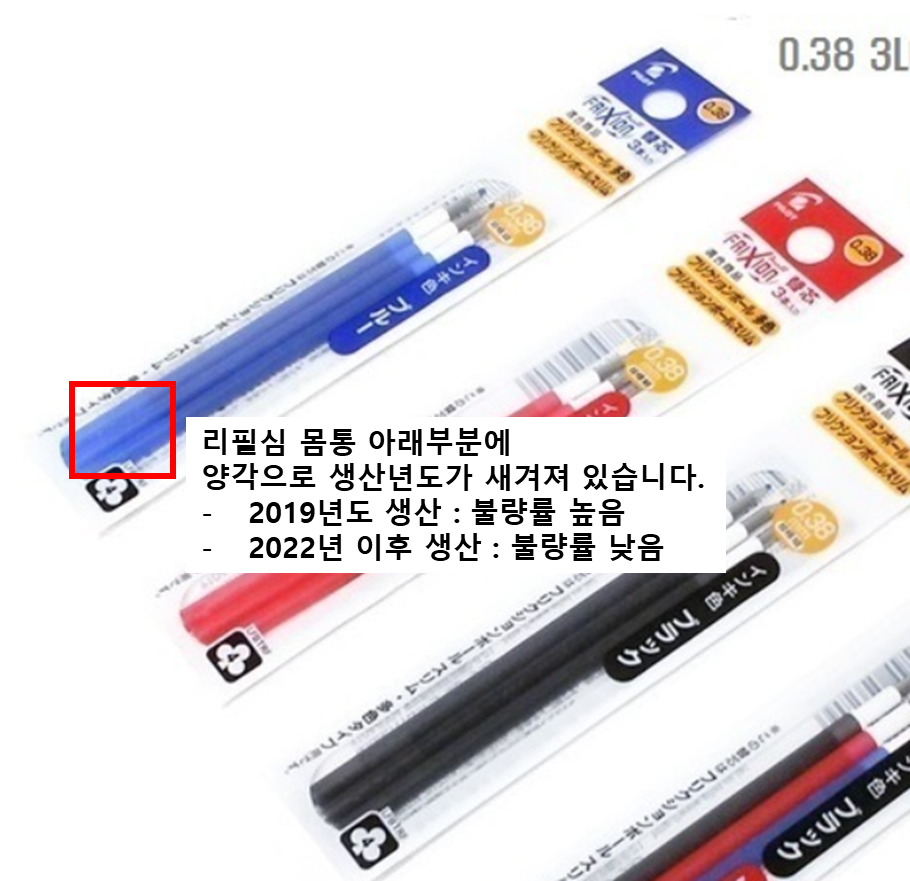 제 뇌피셜로는 2019년도에 생산된 리필심이 특히 불량이 많았습니다. 2022년도에 생산된 리필심은 불량률이 낮았습니다.