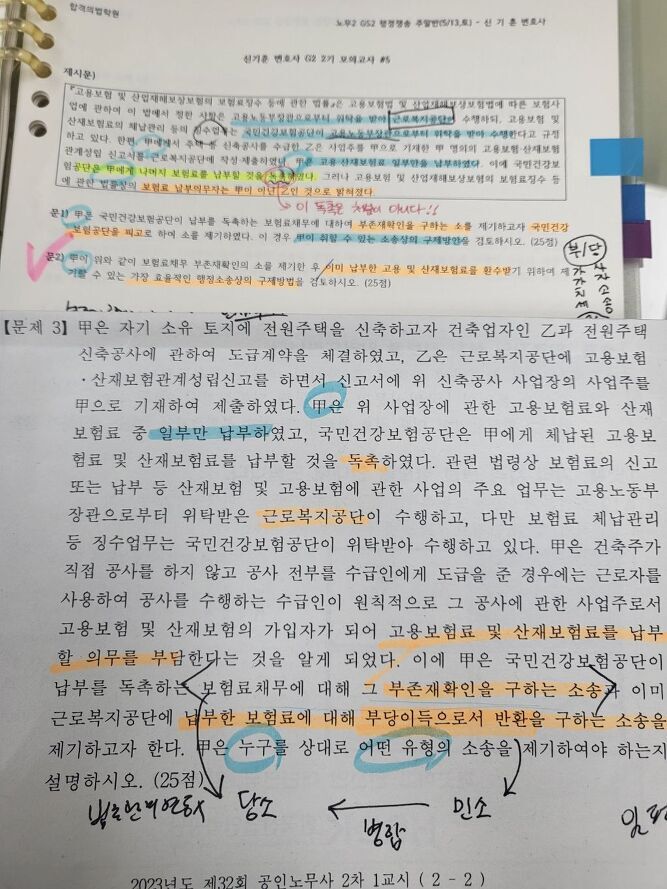 올해 행쟁 3문과 동일한 신기훈 변호사님 2기 5회 문제인데 아래와 같이 형광펜으로 줄 그어가면서 쟁점 파악하였습니다.