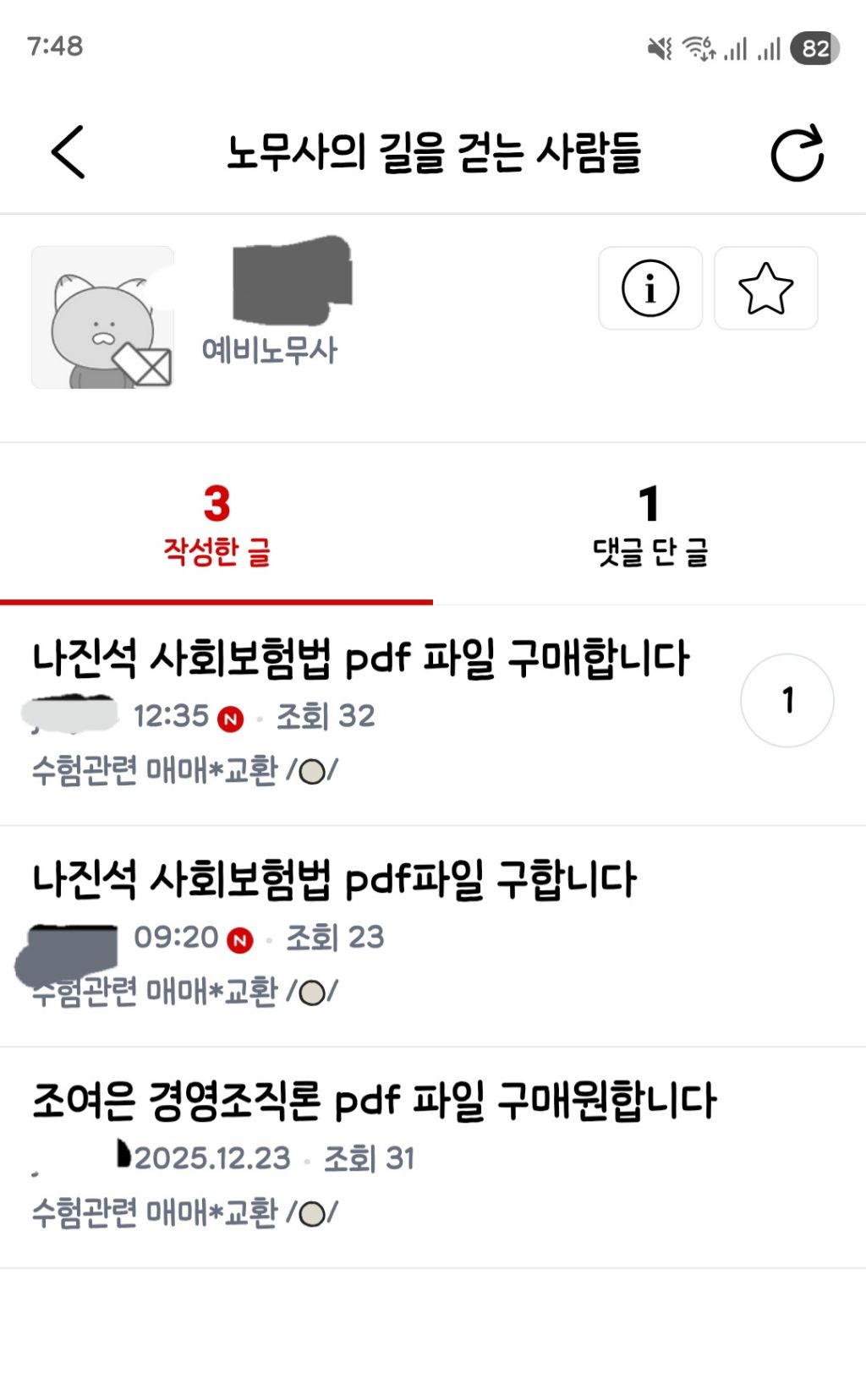 다른 전문직수험카페에서도 pdf거래는 불법으로 명시하고 못하게 막는데