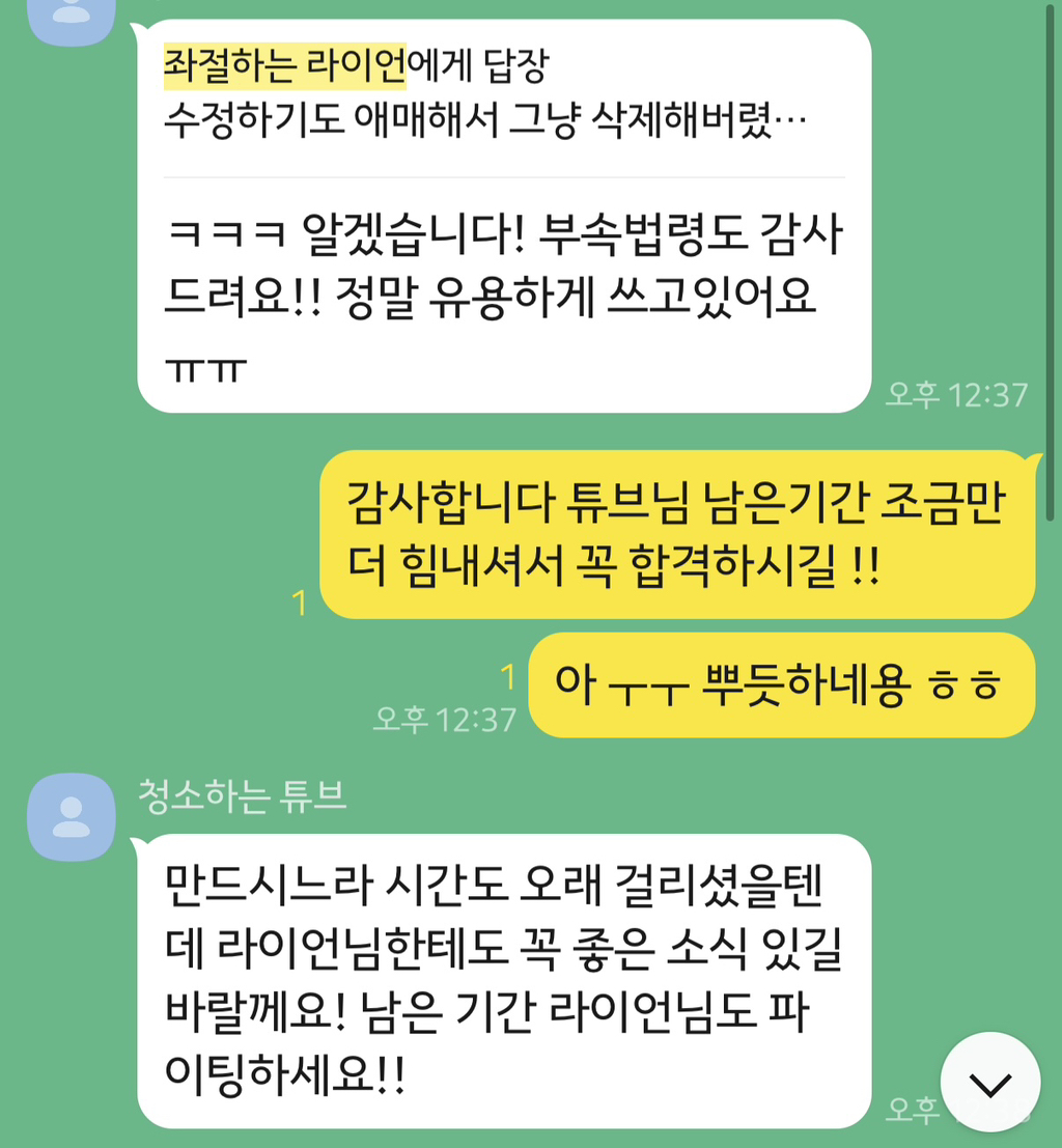์ ์ํค ๋๋ถ์ 1์ฐจ ๊ณ ๋์ ํฉ๊ฒฉํ์๊ณ ๊ณต๋ถ๊ฐ ํจ์ฌ ์์ํ์ต๋๋ค.
