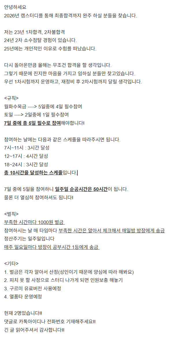 공지 읽어보시고 관심 있으신 분들은 댓글로 카카오톡 아이디나 전화번호 남겨주세요!