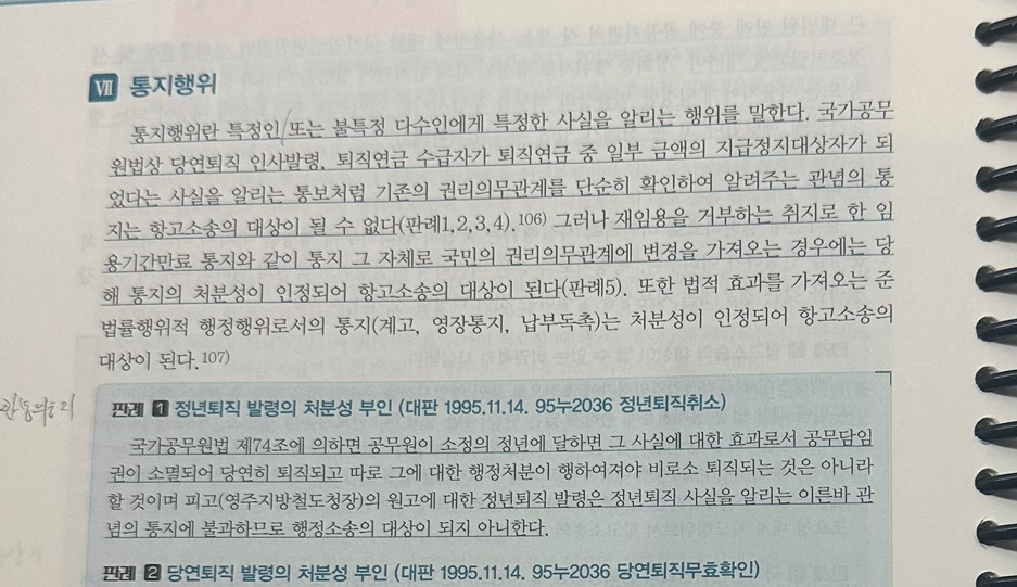 통지행위를 예시로 들면 파란부분이 아닌 부분이 리딩판례인가요??!