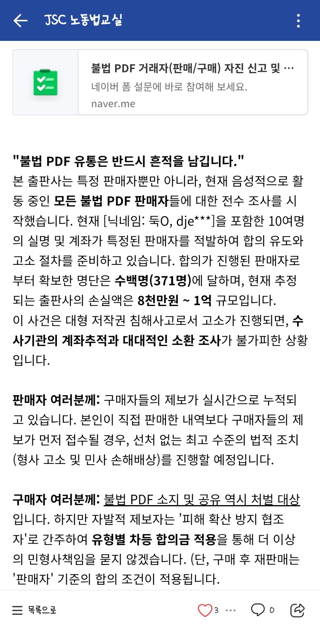 이참에 불법 pdf 거래 그만하시고 이미 거래 하신 분들도 자진신고 바랍니다. 이미 명단이 꽤 나왔나보네요