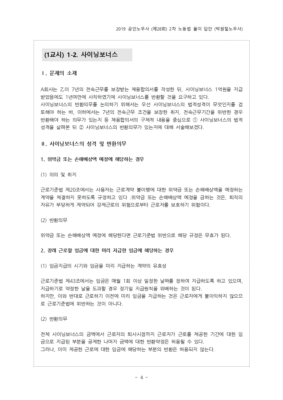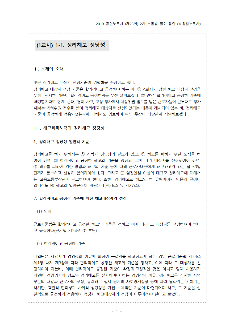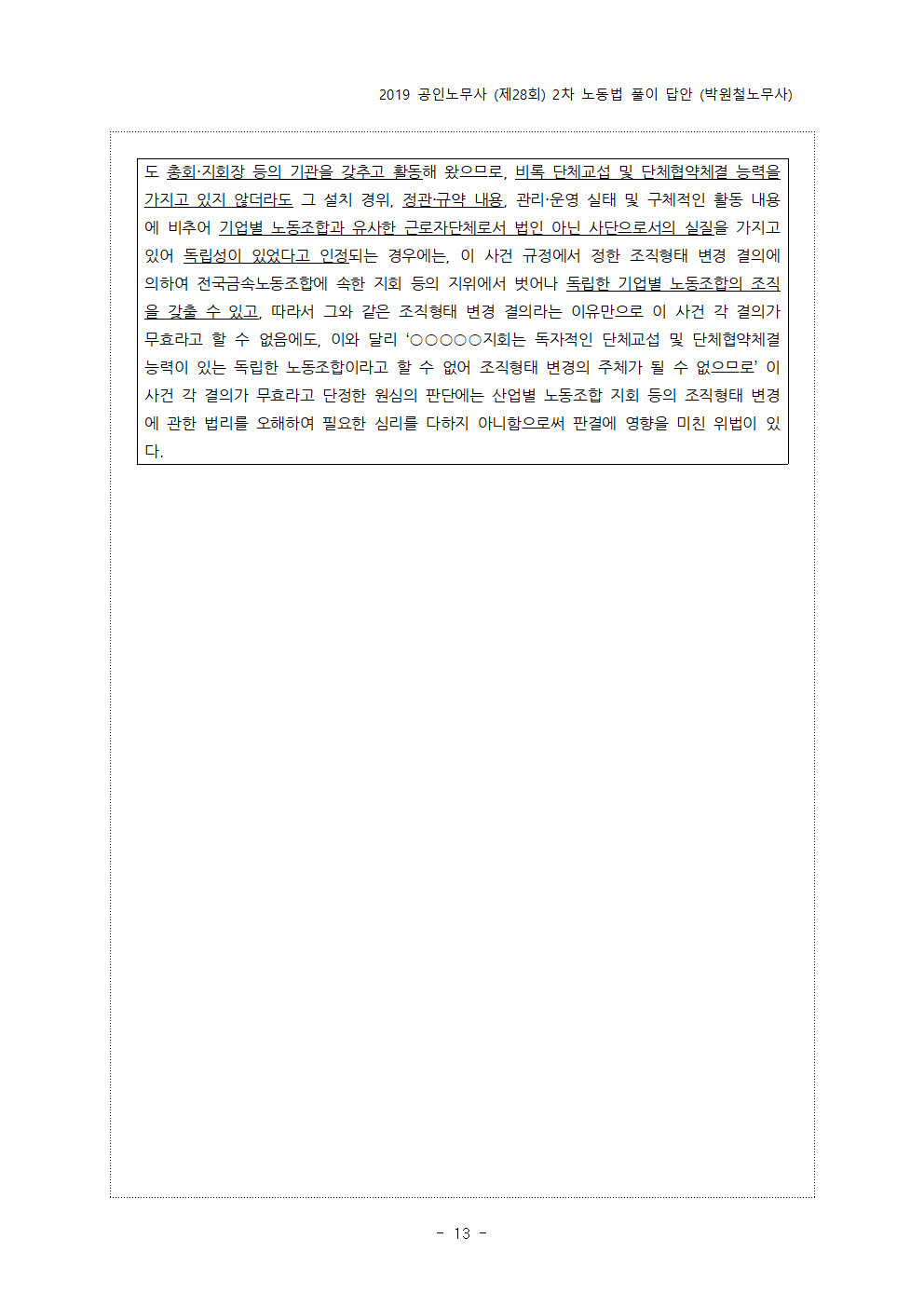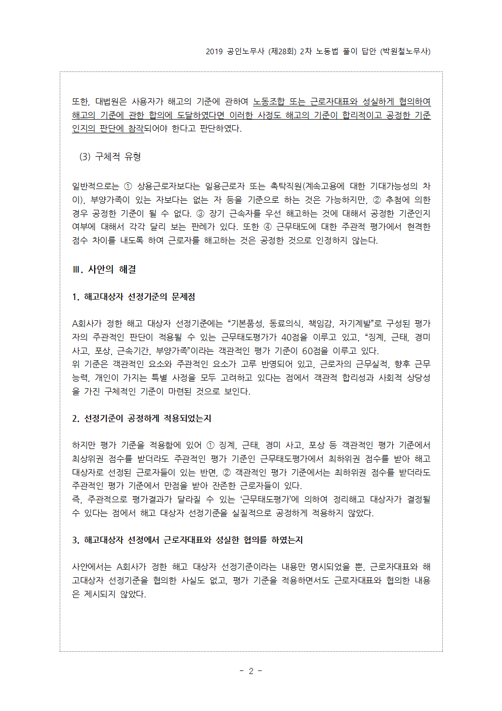 - pdf 파일 2019년 제28회 공인노무사 2차 시험 예시답안 (박원철노무사).pdf 다운로드