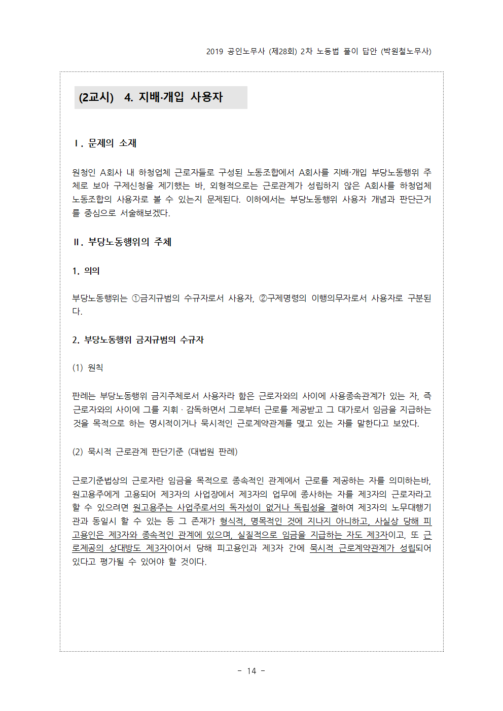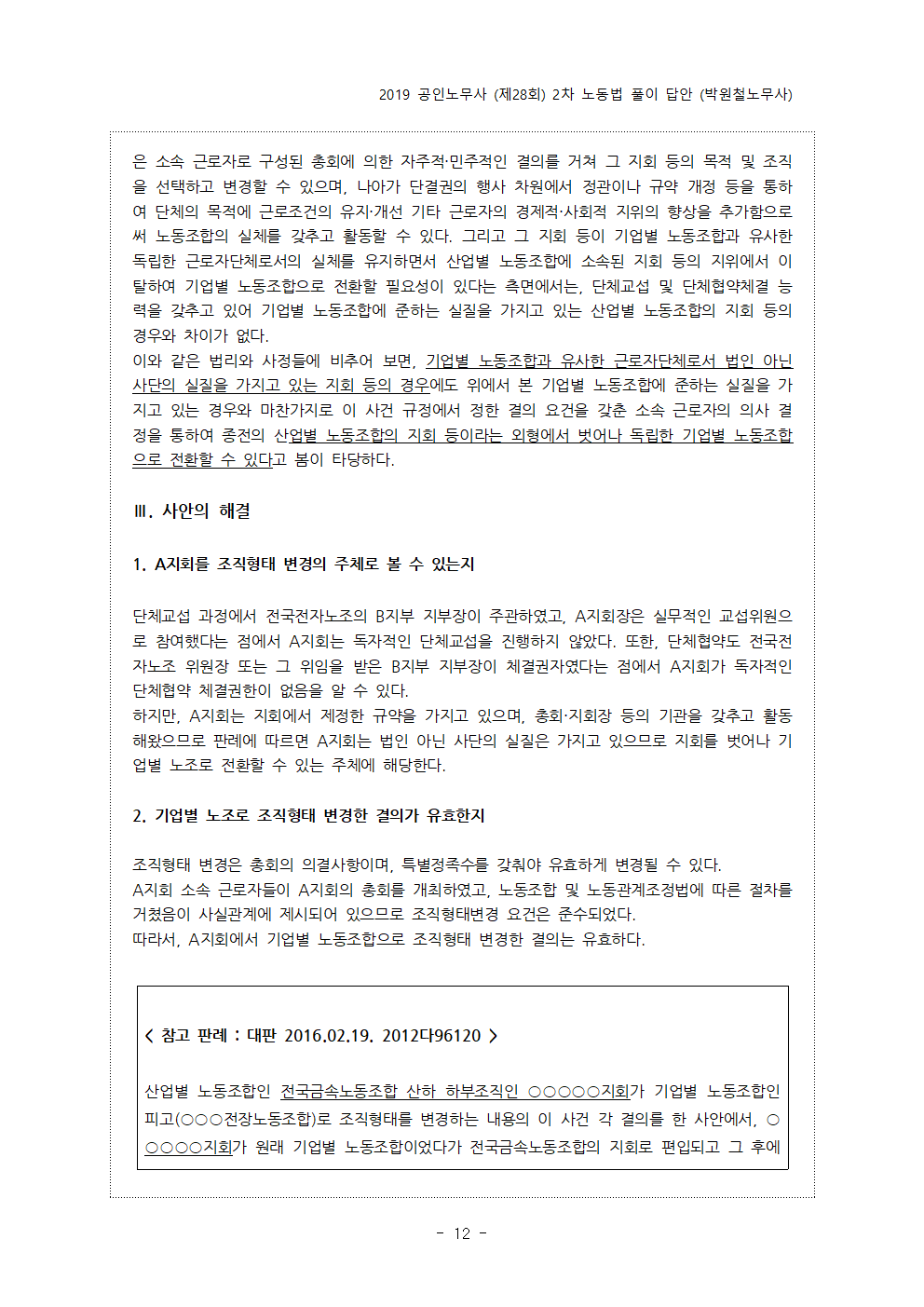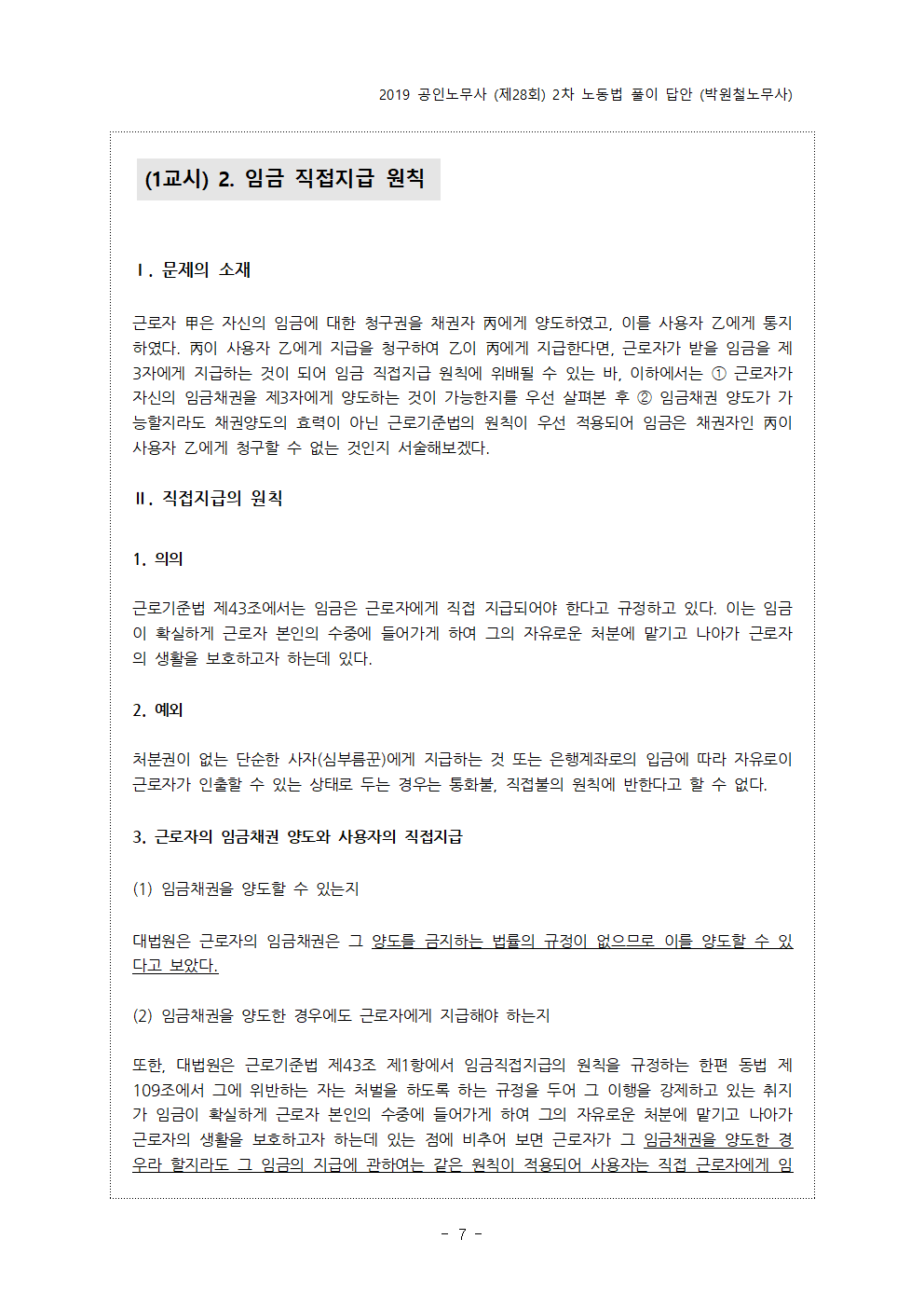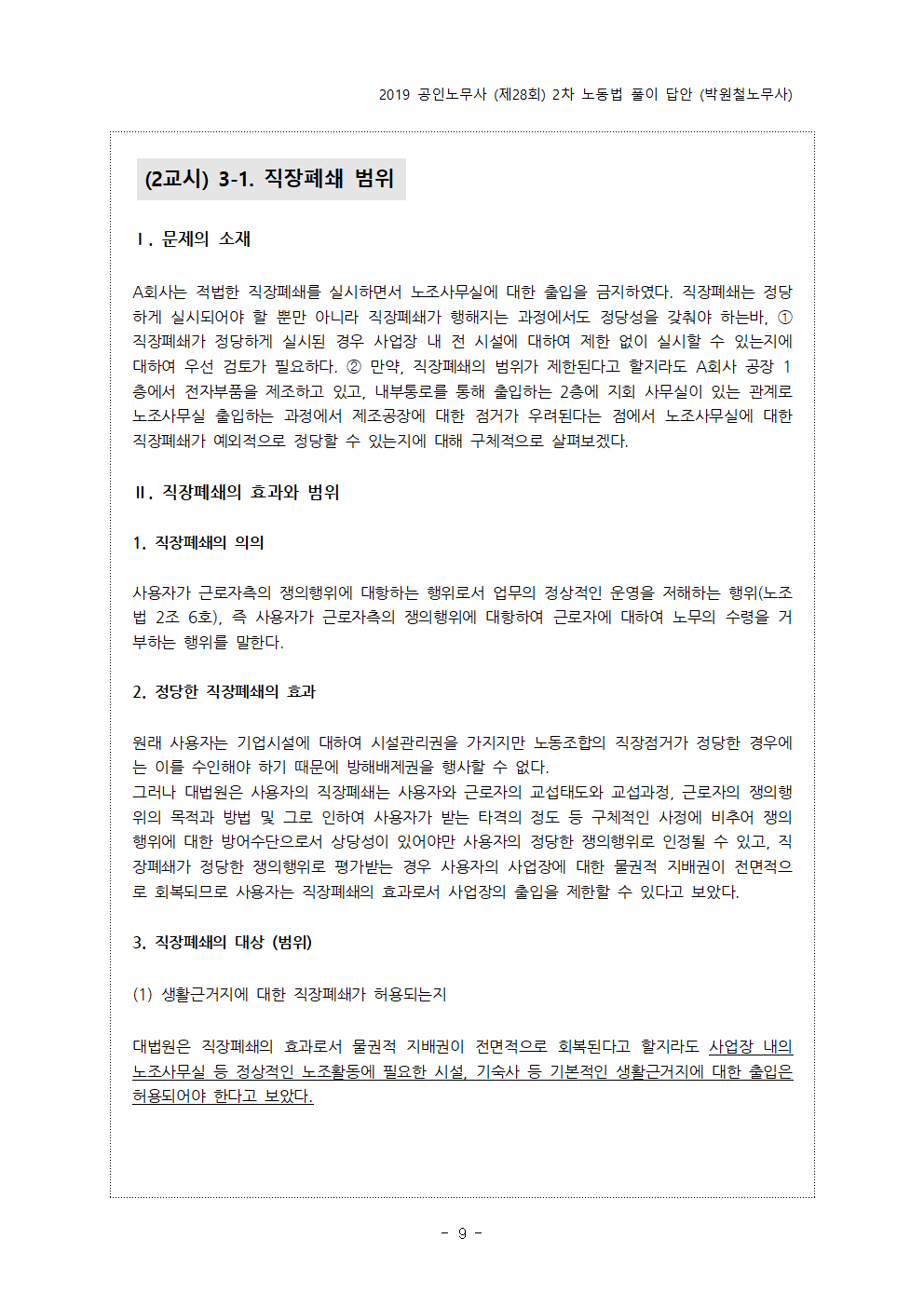 - pdf 파일 2019년 제28회 공인노무사 2차 시험 예시답안 (박원철노무사).pdf 다운로드