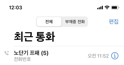 오늘 전화 했더니 방해금지 모드인지 차단한건지 신호 한번 가고 고객님이 전화를 받지 않아 뜨는데