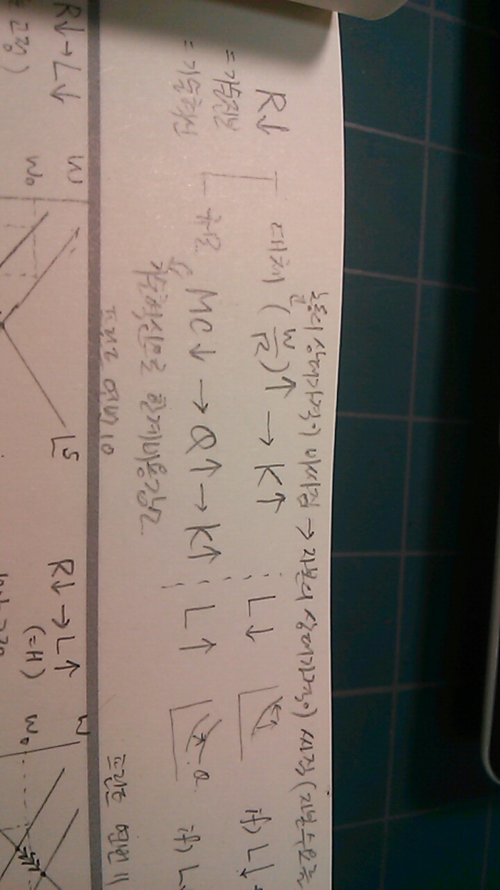 작성자김우탁노무사 작성시간 16.06.16 안녕하세요~ 1. PQ와 같이 자본은 공장과 같은 수량이고 R은 자본가격(공장을 짓기 위해 은행에서 대출했을 경우 지불하는 이자)입니다. 2. 대체효과는 상대가격에 따라 수요를 바꾸는 효과입니다. 규모효과는 임금을 내포한 재화시장의 한계비용곡선의 움직임이 목표생산규모에 영향을 주는 효과입니다
