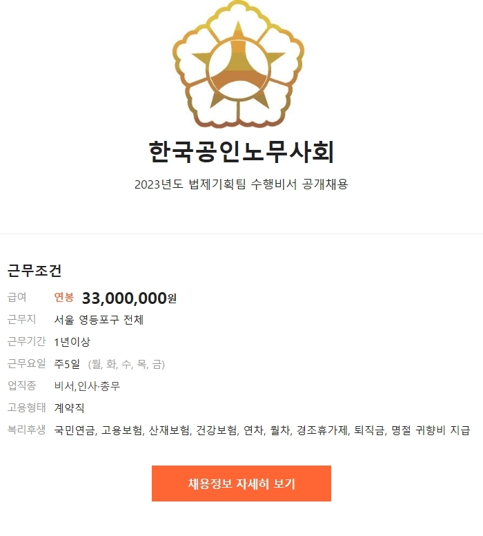 [구인]【한국공인노무사회】2023년도 법제기획팀 수행비서 공개채용 작성자아톰J|작성시간23.03.20|조회수266 목록 댓글 0 글자크기 작게가 글자크기 크게가 【한국공인노무사회】2023년도 법제기획팀 수행비서 공개채용http://joburl.kr/0Nt7R[한국공인노무사회] | 2023년도 법제기획팀 수행비서 공개채용 - 알바몬클릭하여 상세내용을 확인하세요m.albamon.com 다음검색 현재 게시글 추가 기능 열기 북마크 공유하기 신고 센터로 신고 댓글 댓글 0 댓글쓰기 답글쓰기 댓글 리스트