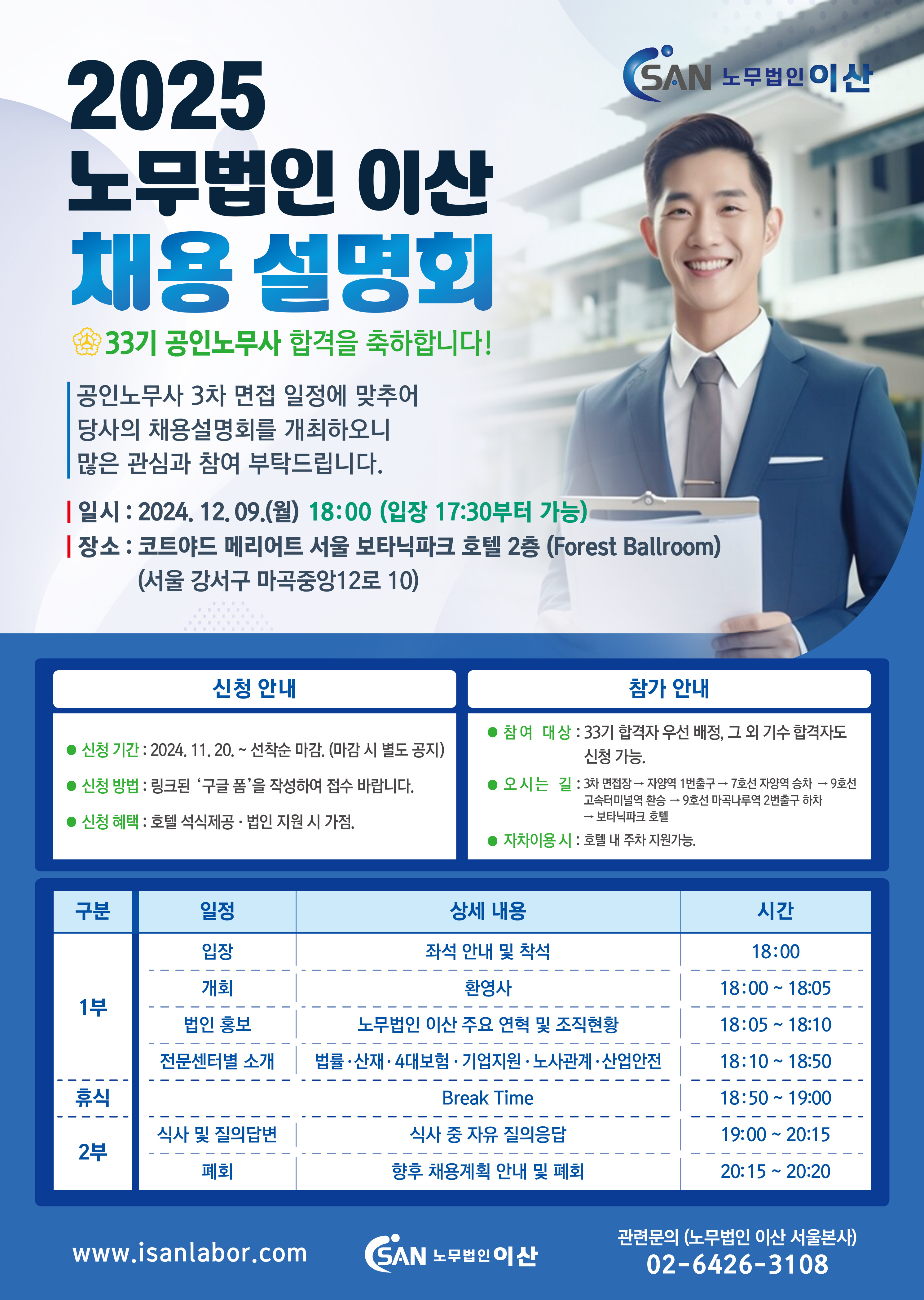 3차 면접일(2024. 12. 9. 월)에 맞추어 “2025 노무법인 이산 채용설명회”를 개최합니다.