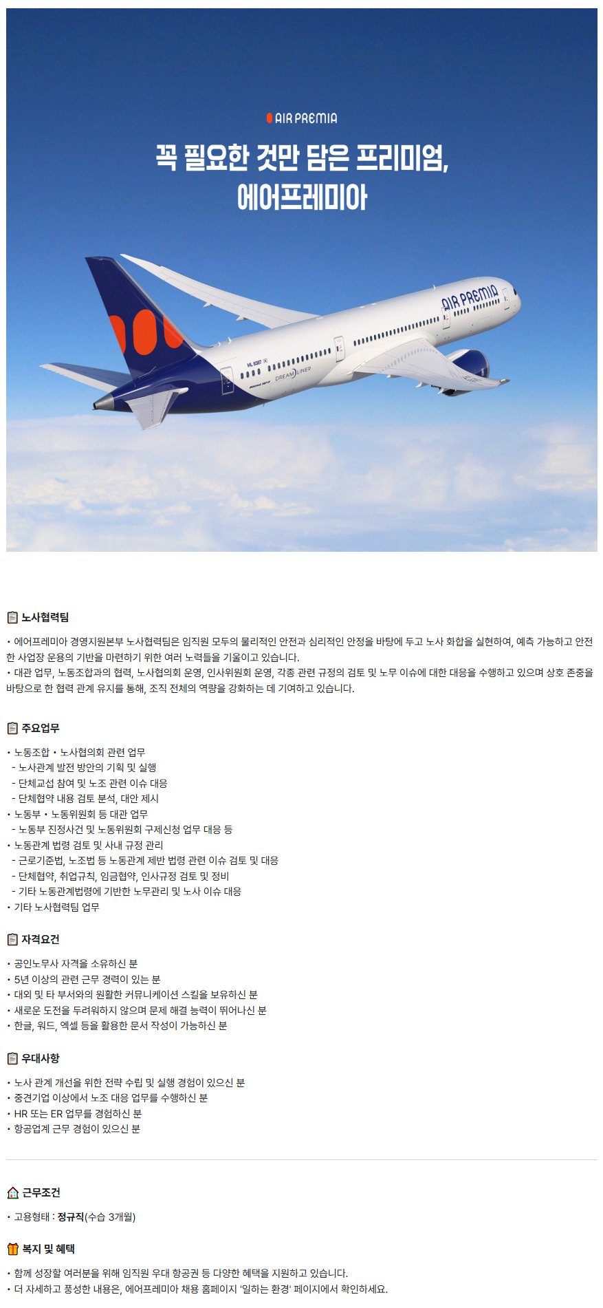 [구인]에어프레미아 노무 담당자 (경력) (~채용시) 작성자행복지기s|작성시간10:52|조회수170 목록 댓글 0 글자크기 작게가 글자크기 크게가 >> 채용원문(링크) 확인하세요 << 다음검색 현재 게시글 추가 기능 열기 북마크 공유하기 신고 센터로 신고 댓글 댓글 0 댓글쓰기 답글쓰기 댓글 리스트