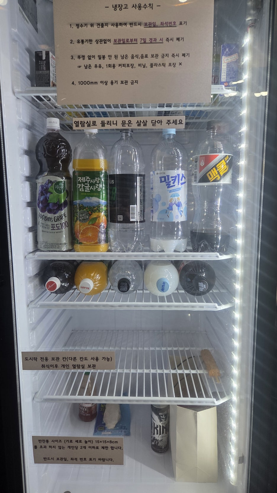 냉장고에 개인음료, 도시락, 간단한 반찬 보관 가능