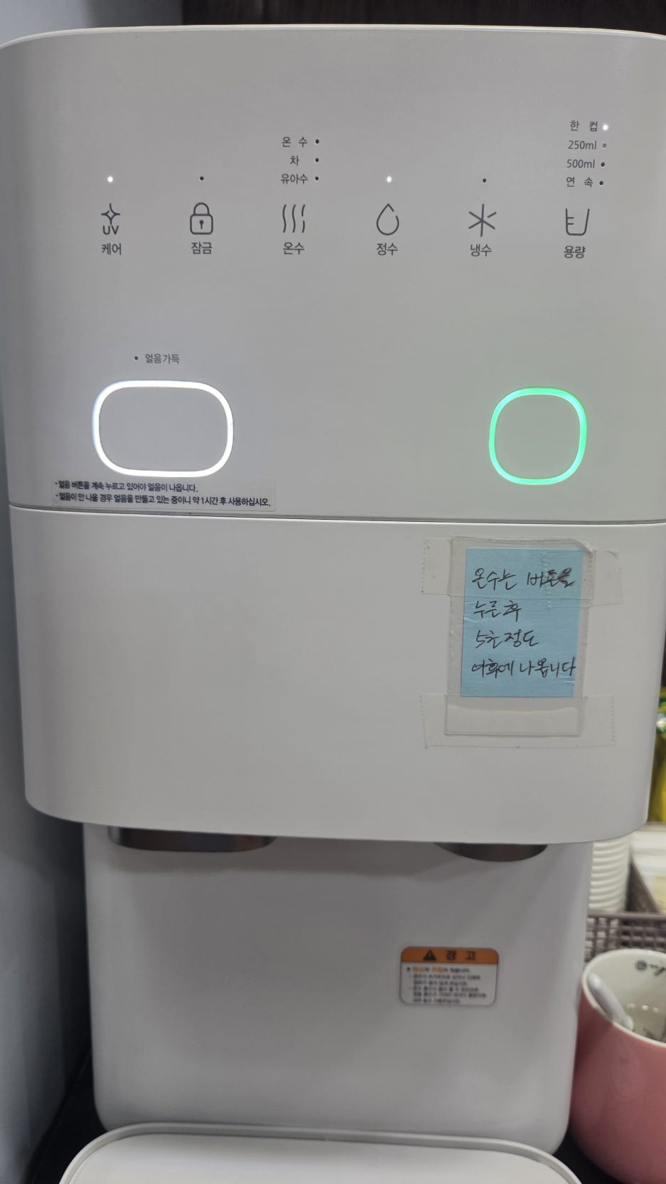 개수대에서 손을 씻거나 개인컵등을 세척할수 있습니다.