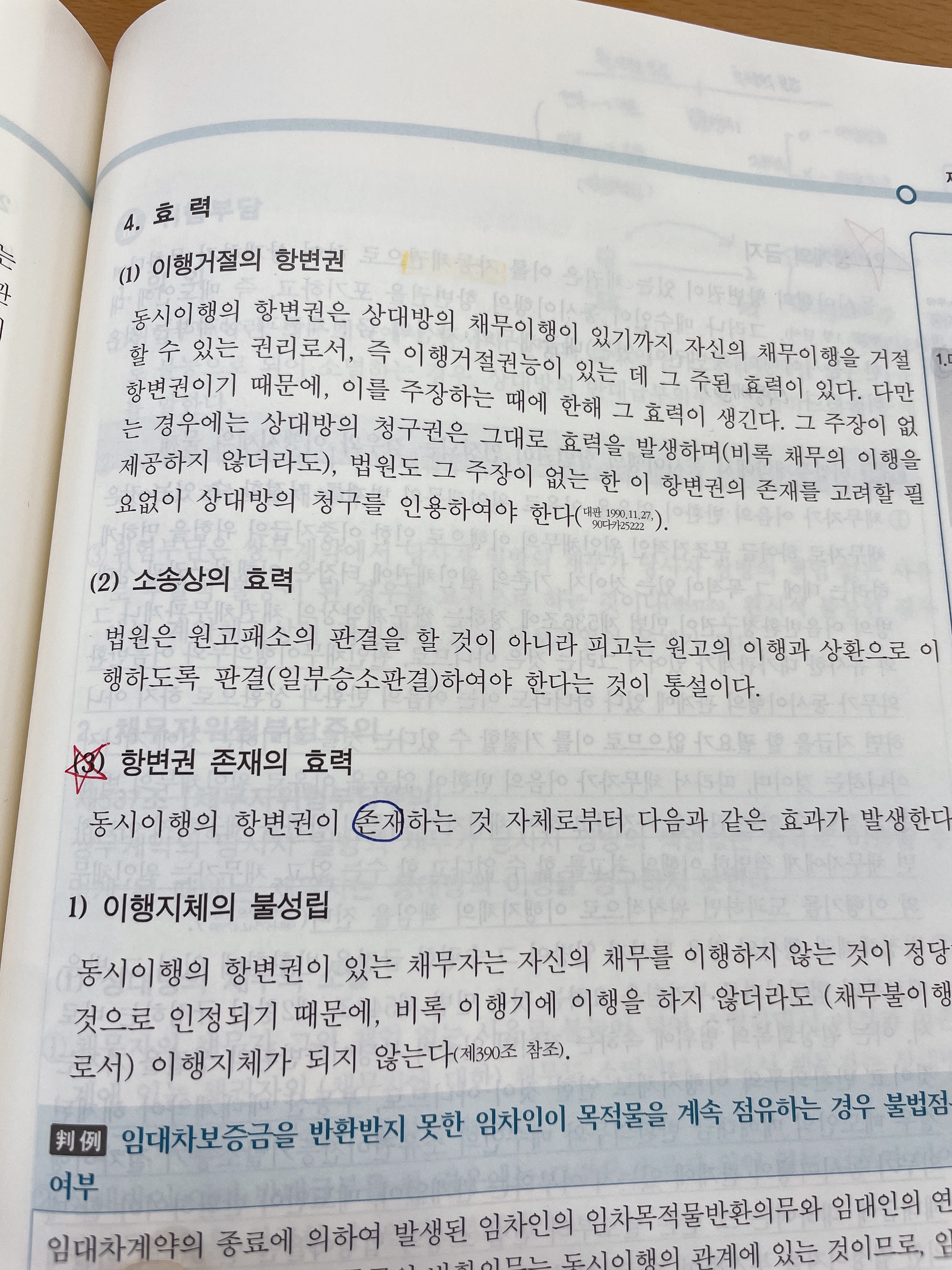 (1)에서 동시이행 항변권은 주장하는 때에 한해 그 효력이 생긴다고 되어있는데,