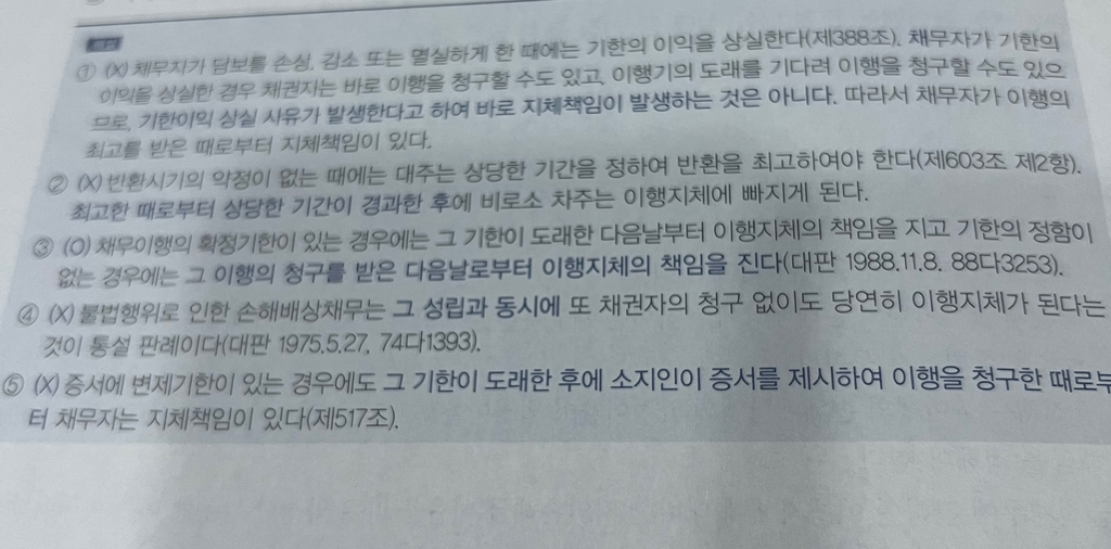 1번 해서 기한의 정함이 없는 걍우 이행청구를 받은 때로부터 지체 책임이 있다