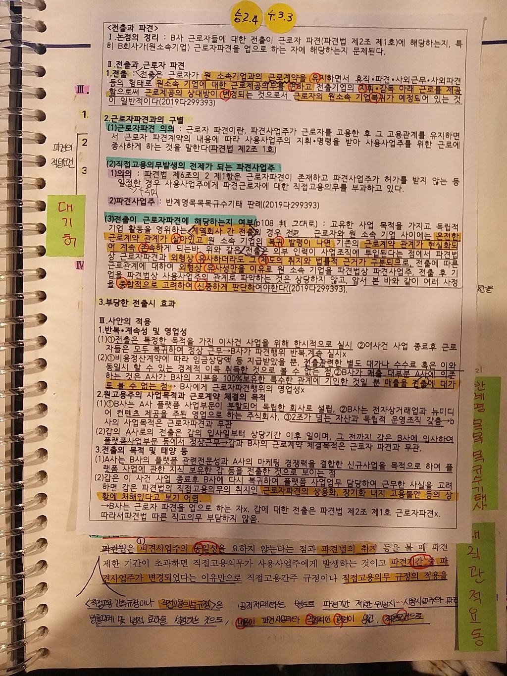 ①1.5기에 승주쌤 단권화 교재가 나와서 수진쌤 책에서 필요한 부분 및 가점요소를 승주쌤 단권화 교재에 가필하였습니다. 두분의 내용이 미세하게 다른 부분이 있는 경우 승주쌤 내용을 그대로 따라갔습니다. 이는 단권화 책이 승주쌤 책이었고 노동법은 과목 특성상 판례가 가장 중요하기에 부가적인 부분에 대한 혼란을 최소화하고 싶었기 때문입니다.