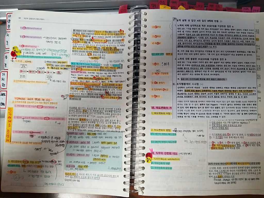 ⑤ 조직사회화와 같이 인사,경조 공통적으로 나오는 부분은 두 교재 페이지를 연결해서 표시해놓고 단권화를 똑같이 해놓았습니다(간혹 표 좌우위치나, 문장이 다른경우가 있었습니다). 회독할 때도 ’아 이게 인사,경조 어디에서 나오는 부분이지!‘하면서 한번 더 보게 되더라구요.