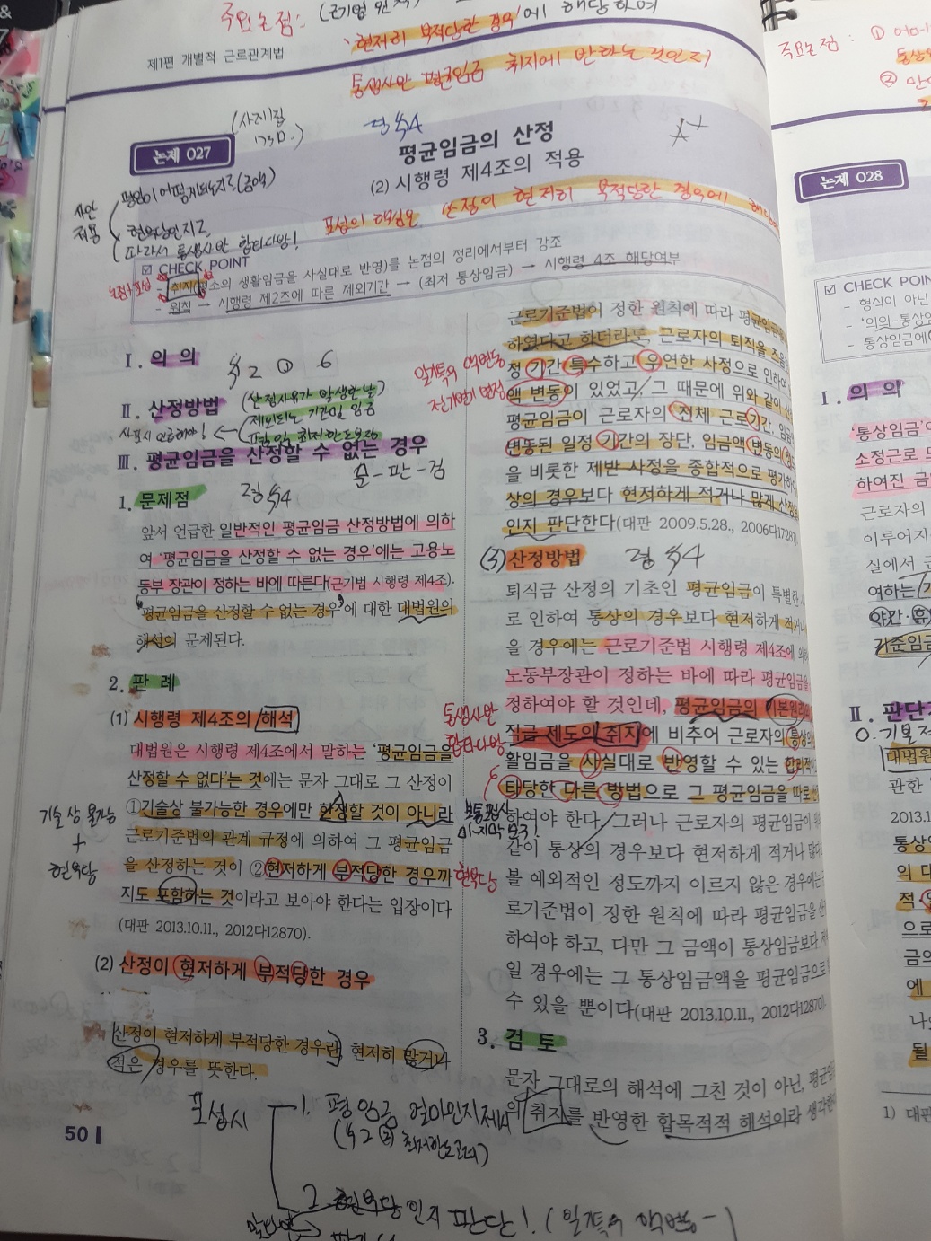 법과목: 대목차-보라색, 중목차-초록색, 소목차- 주황색, 키워드- 노란색, 기타문장- 회색, 조문- 분홍색, 2차시험 1주전 기억안나는 판례- 빨강색