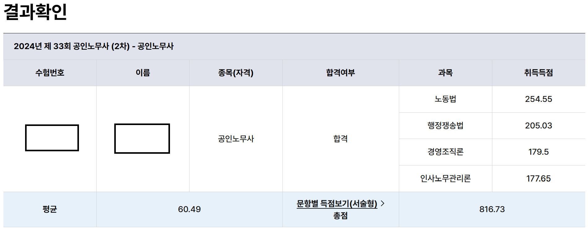 제33회 노무사 2차 시험결과 발표 후 처리할 일이 많아.. 수기를 늦게 남기는 점 양해부탁드립니다.
