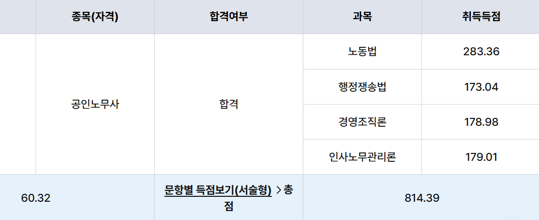 (2) 32회 2차 : 평균 57.6 불합격 (노동 59.79 행쟁 56.6 경조 61.05 인사 51.8)