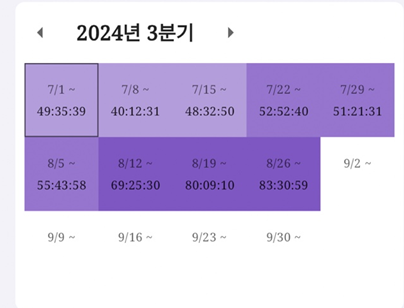 ② 각 과목의 공부시간 비율을 노/행/인/경 순으로 1.5:1:1:1 정도로 나누었습니다.