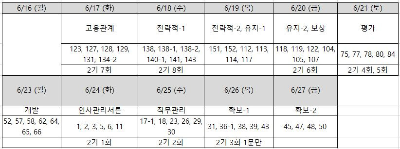 - 화~목, 토: 시험범위 공부(‘포섭구조’ 옮겨두면서 ‘일반론’도 암기)