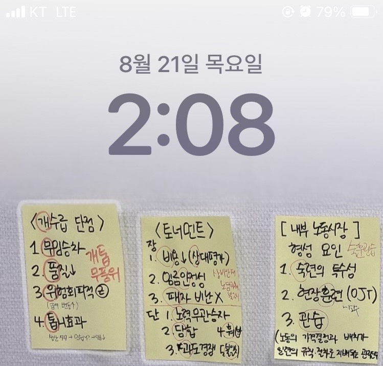 노경 일반론 세트는 포스트잇에 정리해 사진을 찍어 폰 배경화면으로 설정해 두었습니다. 폰 열때마다 회독하고 잠금 풀었어요. 하루에 폰을 10번 보면 10번 회독 되어서 일주일에 한 번씩 배경화면 변경했습니다. 이 방법은 전 과목에서도 활용가능한 팁입니다.