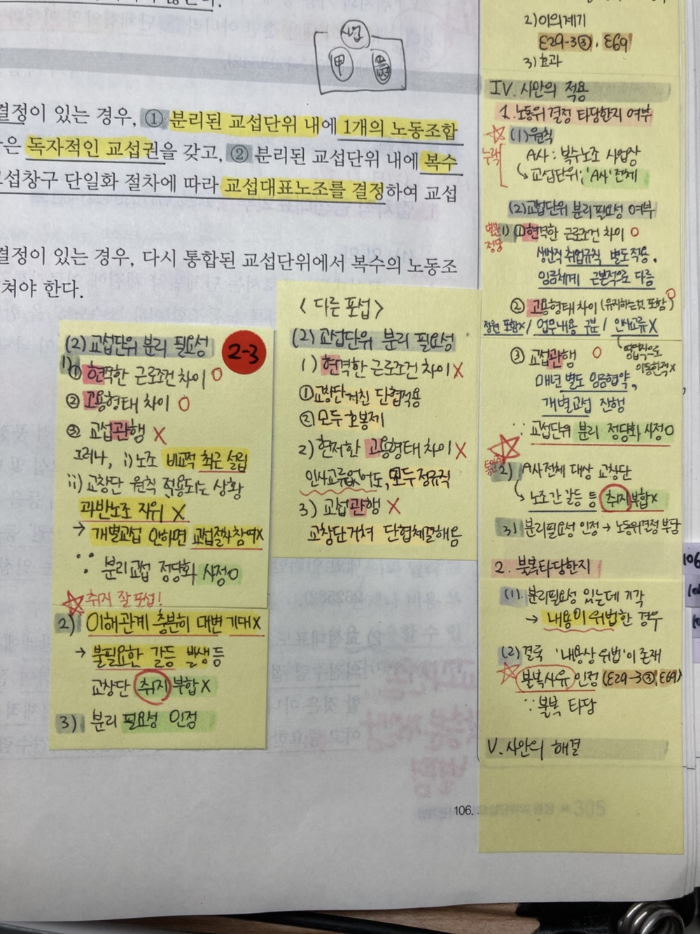 25년에 나온 ‘교섭단위 분리 필요성’은 포섭을 3가지로 작성해 두었습니다. 수진쌤 2기 모고에 동일한 사례로 기출되어 시험장에서 준비한 대로 작성하고 나왔습니다.