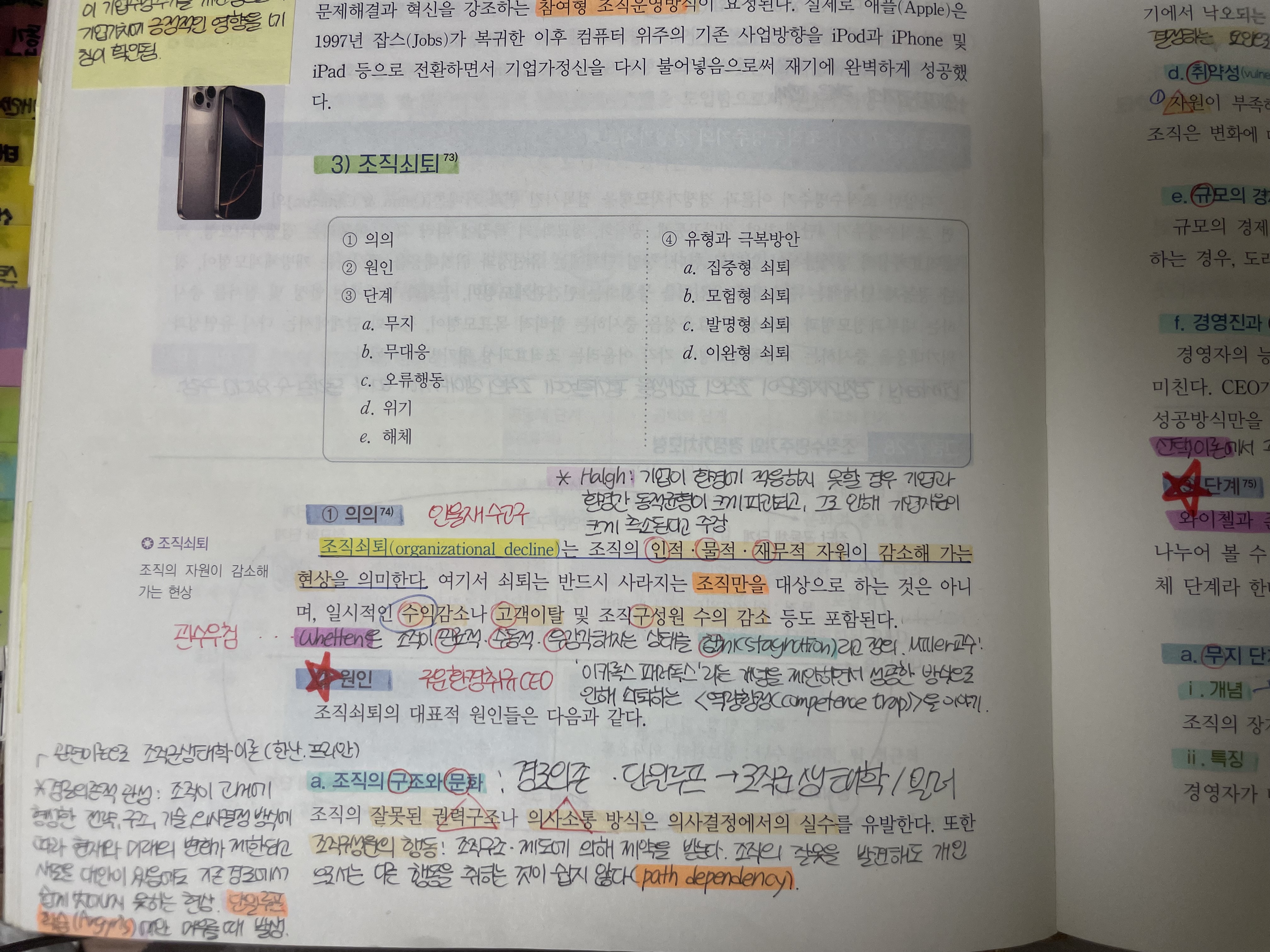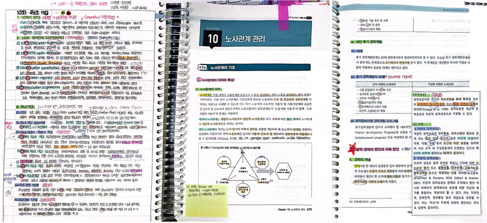 경영조직론은 대부분의 수험생들이 개념 자체를 두문자를 따고 달달 외우게 되는데, 강사님마다 개념을 다르게 서술하십니다. 저는 유미쌤 책으로 옮기고 처음부터 외울 자신이 없어서 책은 바꾸지 않았습니다. 수업때는 유미쌤 책으로 듣고, 중요하게 강조하시는 문장만 락샘 책에 가필해가며 외웠습니다.