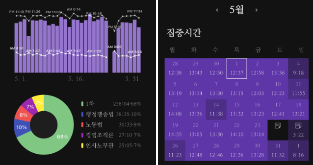 5/11부터는(1차 2주전) 1차에 올인했습니다. 2차는 5월 초반에는 저녁에만 했어요.