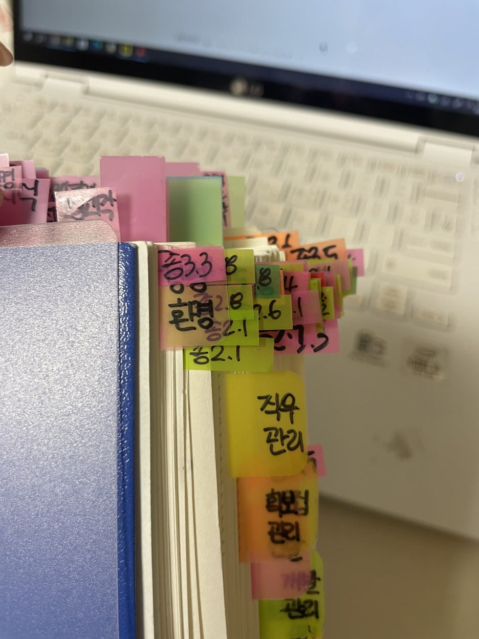 포스트잇에 두문자를 써서 화장실이나 방에 붙이면서 외우려고 노력했습니다!