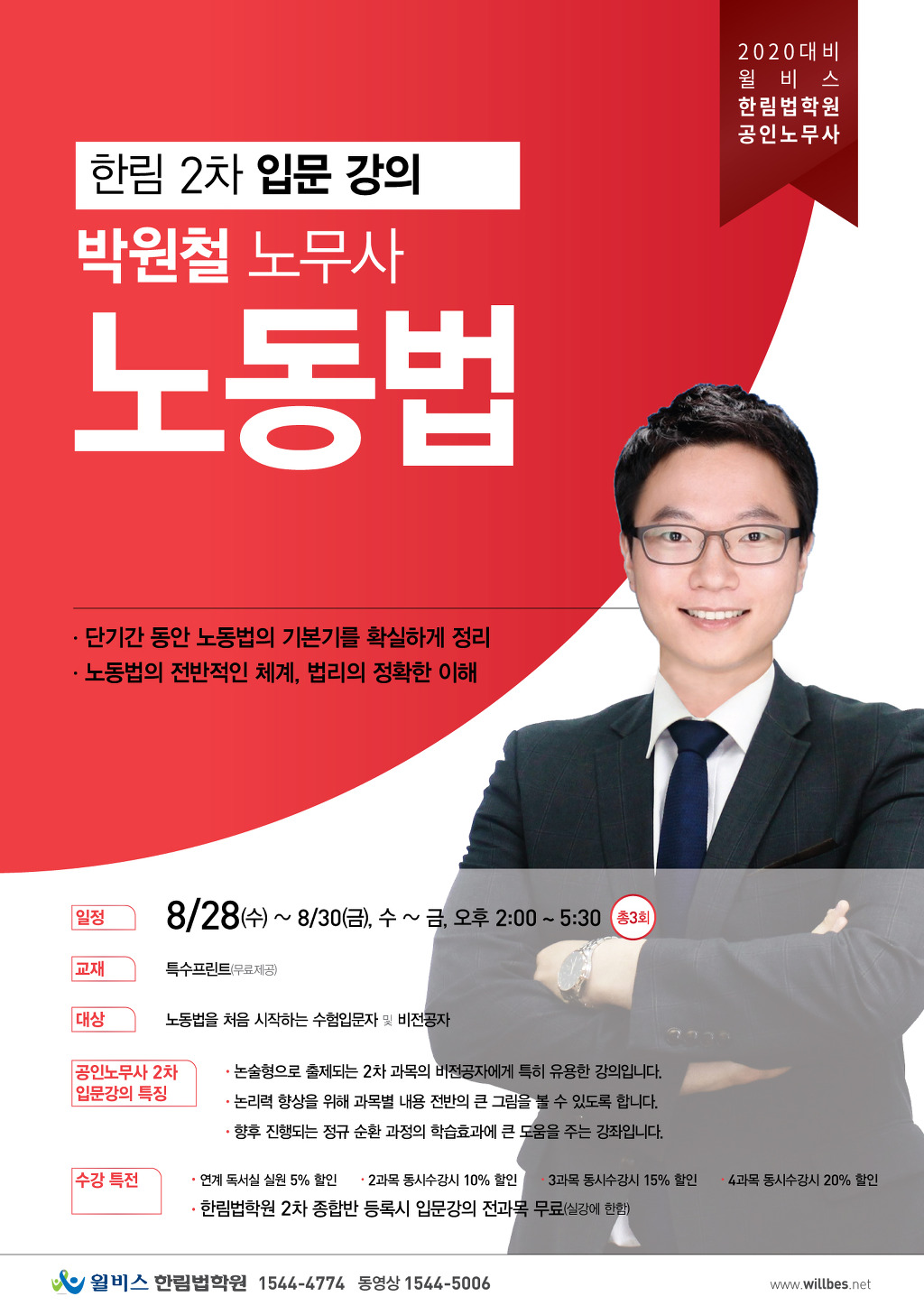 2020대비 2차 입문강의 박원철 노무사 노동법 강의 안내 8/28(수) 개강! 작성자한림법학원|작성시간19.08.26|조회수302 목록 댓글 0 글자크기 작게가 글자크기 크게가 다음검색 현재 게시글 추가 기능 열기 북마크 공유하기 신고 센터로 신고 댓글 댓글 0 댓글쓰기 답글쓰기 댓글 리스트
