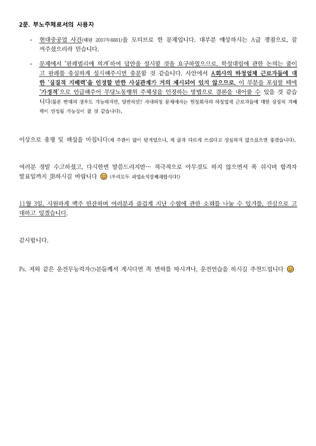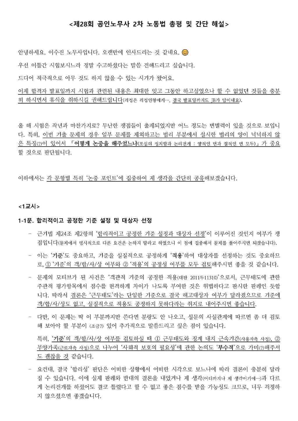 2019년 제28회 공인노무사 2차 노동법 총평 및 해설_이수진 노무사 작성자한림법학원|작성시간19.09.01|조회수2,552 목록 댓글 0 글자크기 작게가 글자크기 크게가 2019년도 제28회 노동법 총평 및 해설.pdf 첨부파일첨부된 파일이 5개 있습니다. jpg 파일 2019년도 제28회 노동법 총평 및 해설_페이지_1.jpg 다운로드 jpg 파일 2019년도 제28회 노동법 총평 및 해설_페이지_2.jpg 다운로드 jpg 파일 2019년도 제28회 노동법 총평 및 해설_페이지_3.jpg 다운로드 jpg 파일 2019년도 제28회 노동법 총평 및 해설_페이지_4.jpg 다운로드 pdf 파일 2019년도 제28회 노동법 총평 및 해설.pdf 다운로드 다음검색 현재 게시글 추가 기능 열기 북마크 공유하기 신고 센터로 신고 댓글 댓글 0 댓글쓰기 답글쓰기 댓글 리스트