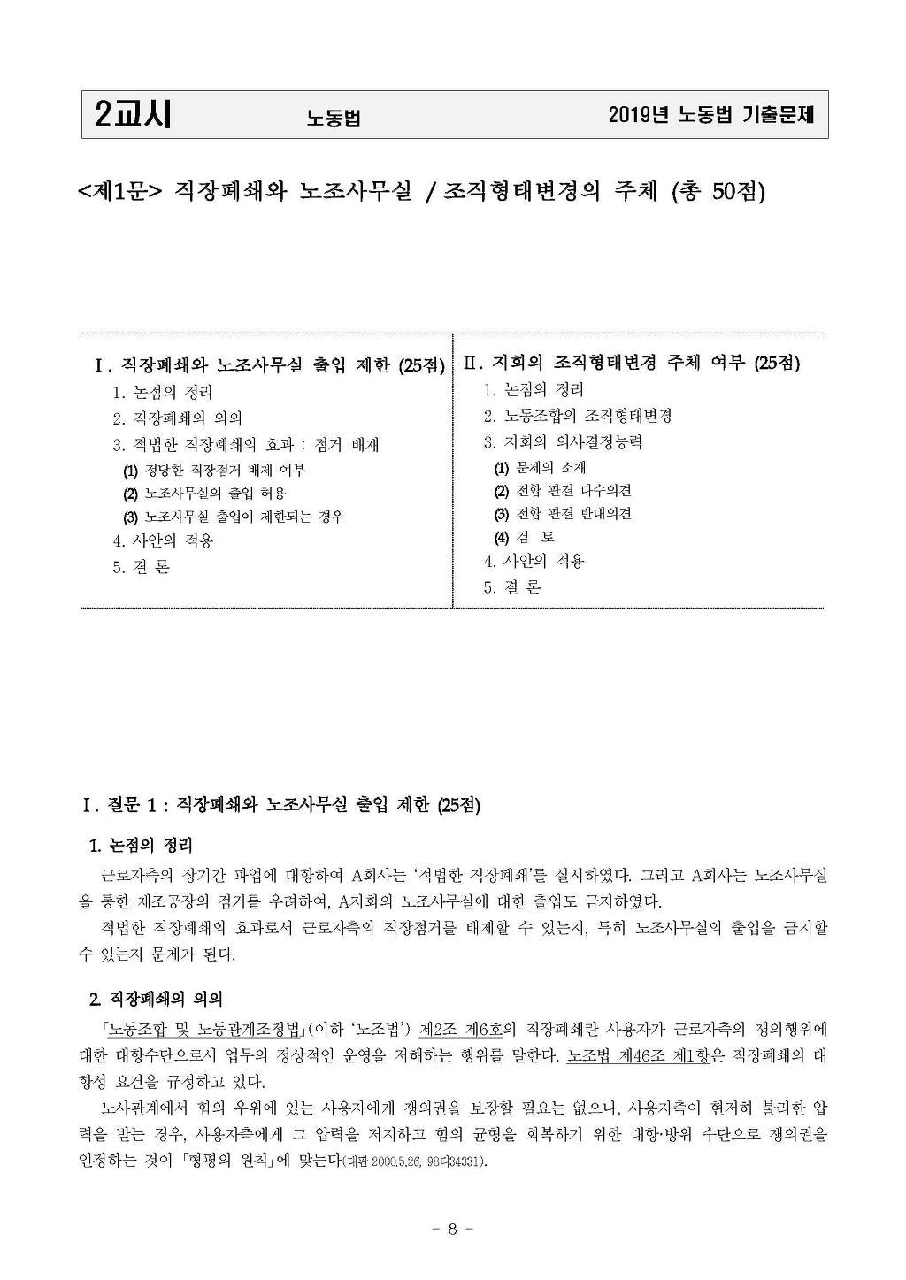 2019년 제28회 공인노무사 2차 노동법 예시답안_방강수 노무사·박사 작성자한림법학원|작성시간19.09.03|조회수3,774 목록 댓글 1 글자크기 작게가 글자크기 크게가 19년 노동법 기출 예시답안.pdf 첨부파일첨부된 파일이 14개 있습니다. jpg 파일 19년 노동법 기출 예시답안_페이지_01.jpg 다운로드 jpg 파일 19년 노동법 기출 예시답안_페이지_02.jpg 다운로드 jpg 파일 19년 노동법 기출 예시답안_페이지_03.jpg 다운로드 jpg 파일 19년 노동법 기출 예시답안_페이지_04.jpg 다운로드 jpg 파일 19년 노동법 기출 예시답안_페이지_05.jpg 다운로드 jpg 파일 19년 노동법 기출 예시답안_페이지_06.jpg 다운로드 jpg 파일 19년 노동법 기출 예시답안_페이지_07.jpg 다운로드 jpg 파일 19년 노동법 기출 예시답안_페이지_08.jpg 다운로드 jpg 파일 19년 노동법 기출 예시답안_페이지_09.jpg 다운로드 jpg 파일 19년 노동법 기출 예시답안_페이지_10.jpg 다운로드 jpg 파일 19년 노동법 기출 예시답안_페이지_11.jpg 다운로드 jpg 파일 19년 노동법 기출 예시답안_페이지_12.jpg 다운로드 jpg 파일 19년 노동법 기출 예시답안_페이지_13.jpg 다운로드 pdf 파일 19년 노동법 기출 예시답안.pdf 다운로드 다음검색 현재 게시글 추가 기능 열기 북마크 공유하기 신고 센터로 신고 댓글 댓글 1 댓글쓰기 답글쓰기 댓글 리스트 작성자노무 꿈나무 | 작성시간 19.09.03 감사합니다~! 댓글 전체보기