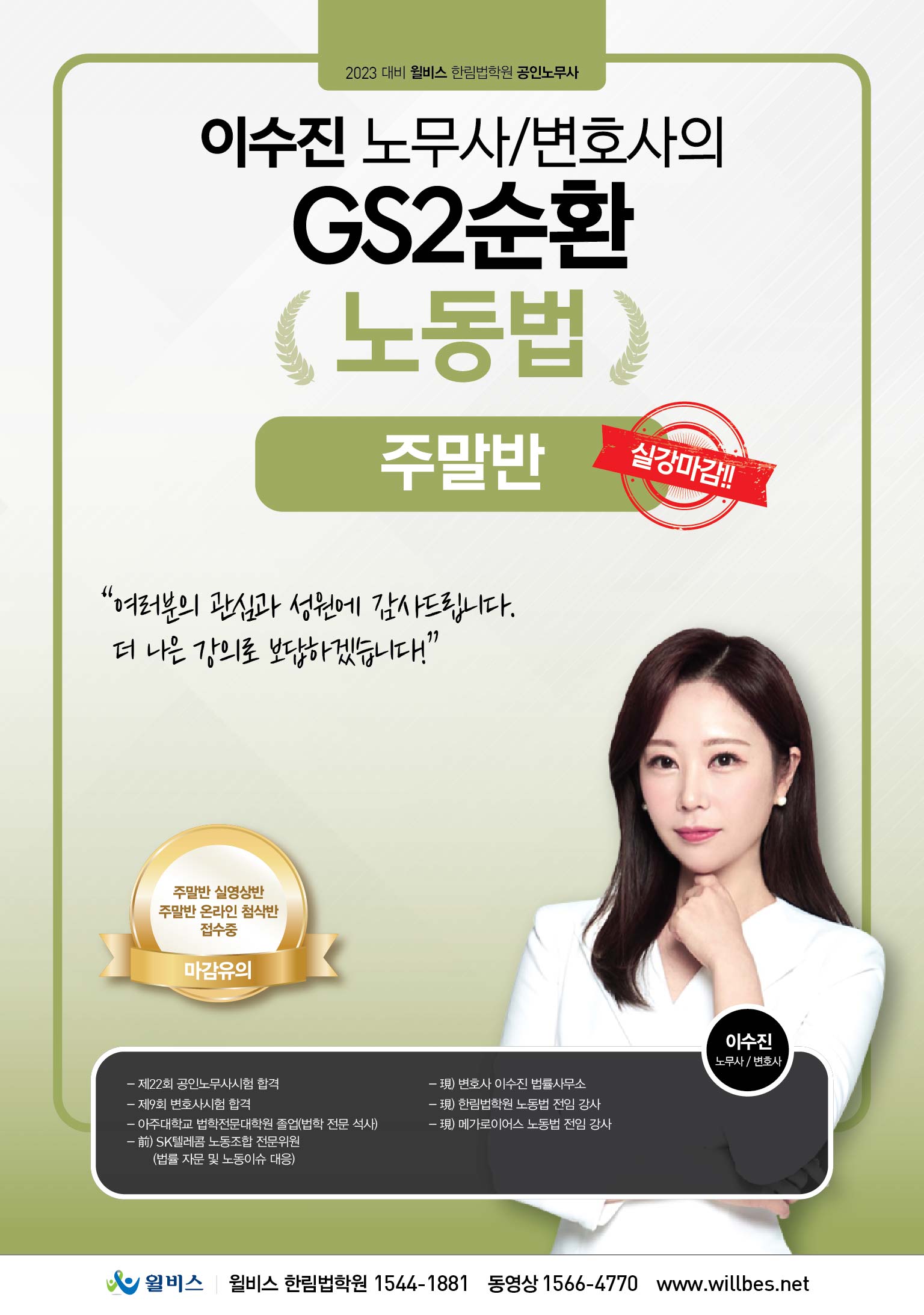 [실강마감] 2023년대비 GS2순환(주말반) 이수진 노동법 #실강마감 작성자한림법학원|작성시간23.03.10|조회수791 목록 댓글 0 글자크기 작게가 글자크기 크게가 다음검색 현재 게시글 추가 기능 열기 북마크 공유하기 신고 센터로 신고 댓글 댓글 0 댓글쓰기 답글쓰기 댓글 리스트
